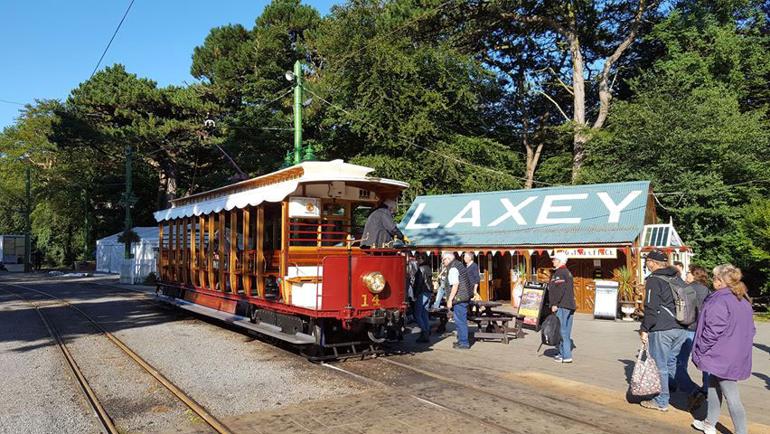Passengers look to board 14 at Laxey on 31st August. (Photograph by Nick Bartlett)
