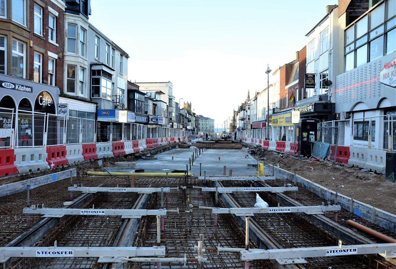 Outside Ma Kelly’s looking down towards the seafront and the gap between construction sites is seen but what will go here? Will it be a temporary platform? The tracks behind the camera curve towards the entrance to Wilkinson’s. (Photograph by Tony Stevenson)