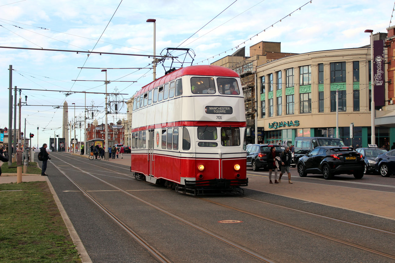 The date is 22nd September and this photo shows 701 at North Pier/Tower about to return to depot. With a temporary stop provided at Manchester Square for the Spectacular passengers remain on board for a short journey yet.