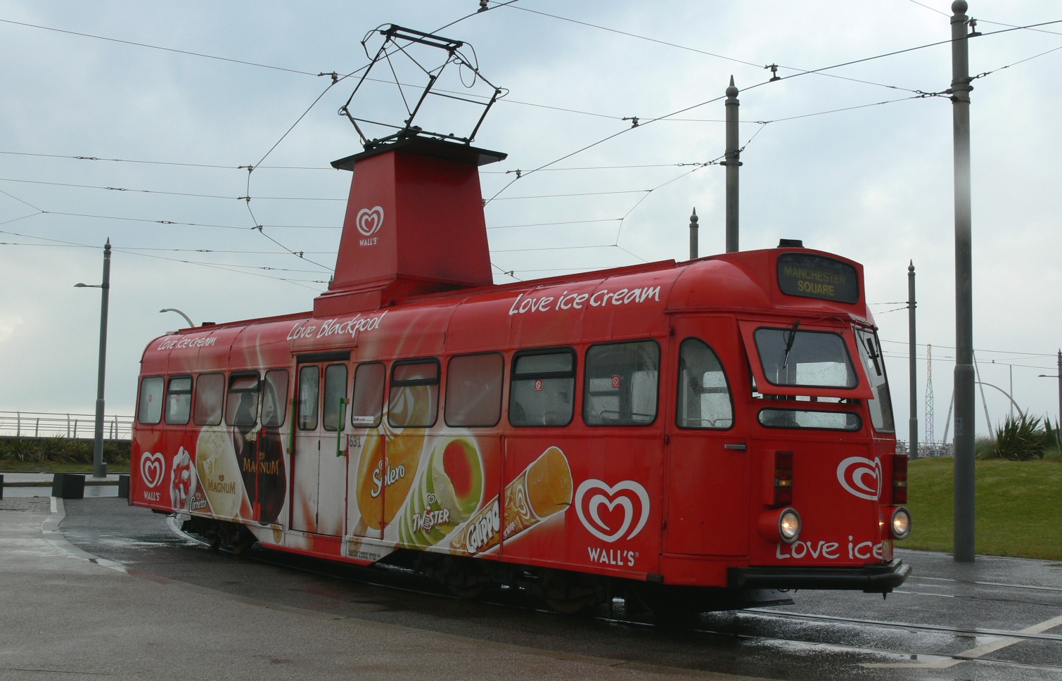 A classic scene with 631 in its Walls advert at Pleasure Beach in September 2011. Note how badly the vinyls on the lower panels were deteriortaing by this time. (Photo by Andrew Waddington)