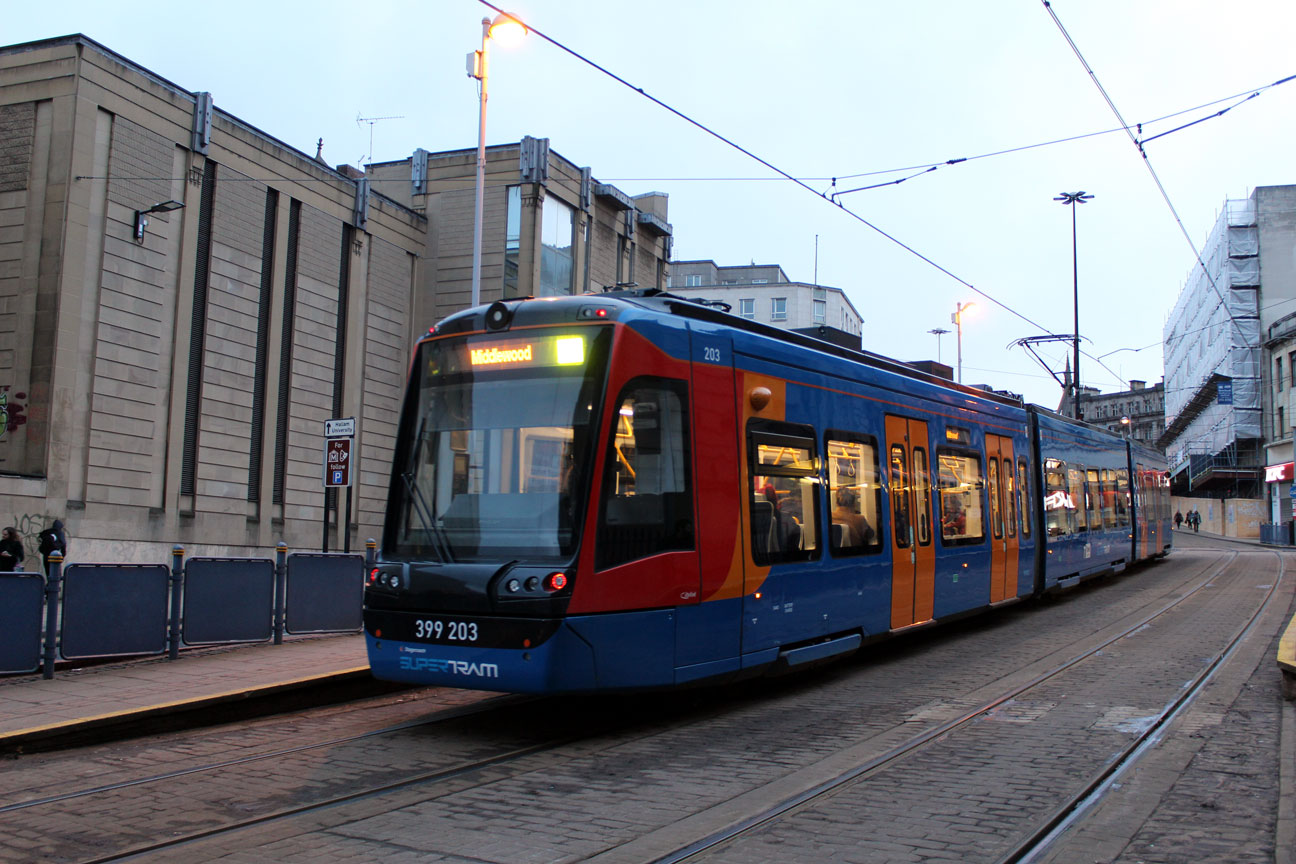 For the second year in a row the Modern Tram of the Year is a Stagecoach Supertram Citylink Tram-Train. This time around it is 399 203 which started off public services for the UK’s first Tram-Train service. Before that service had begun we see 399 203 at Fitzalan Square on 8th March 2018 working a Yellow route service to Middlewood.