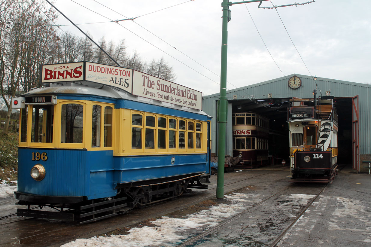 Newcastle 114 is pictured on No.4 Road having finished its driver training stint. Oporto 65 is on the same Road inside the Tram Shed. Oporto 196 is the sole occupant of No.3 Road, whilst 16 is in the Shed with 26 behind it on No.2 Road. In the Shed and out of sight in this view is Sheffield 264 on No.1 Road.