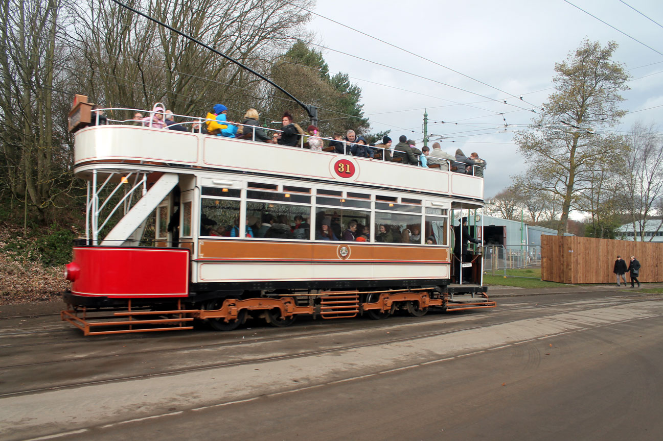 Blackpool 31 heads off round the tramway circuit from Foulbridge. The fencing in the background marks the worksite for the new bus garage.