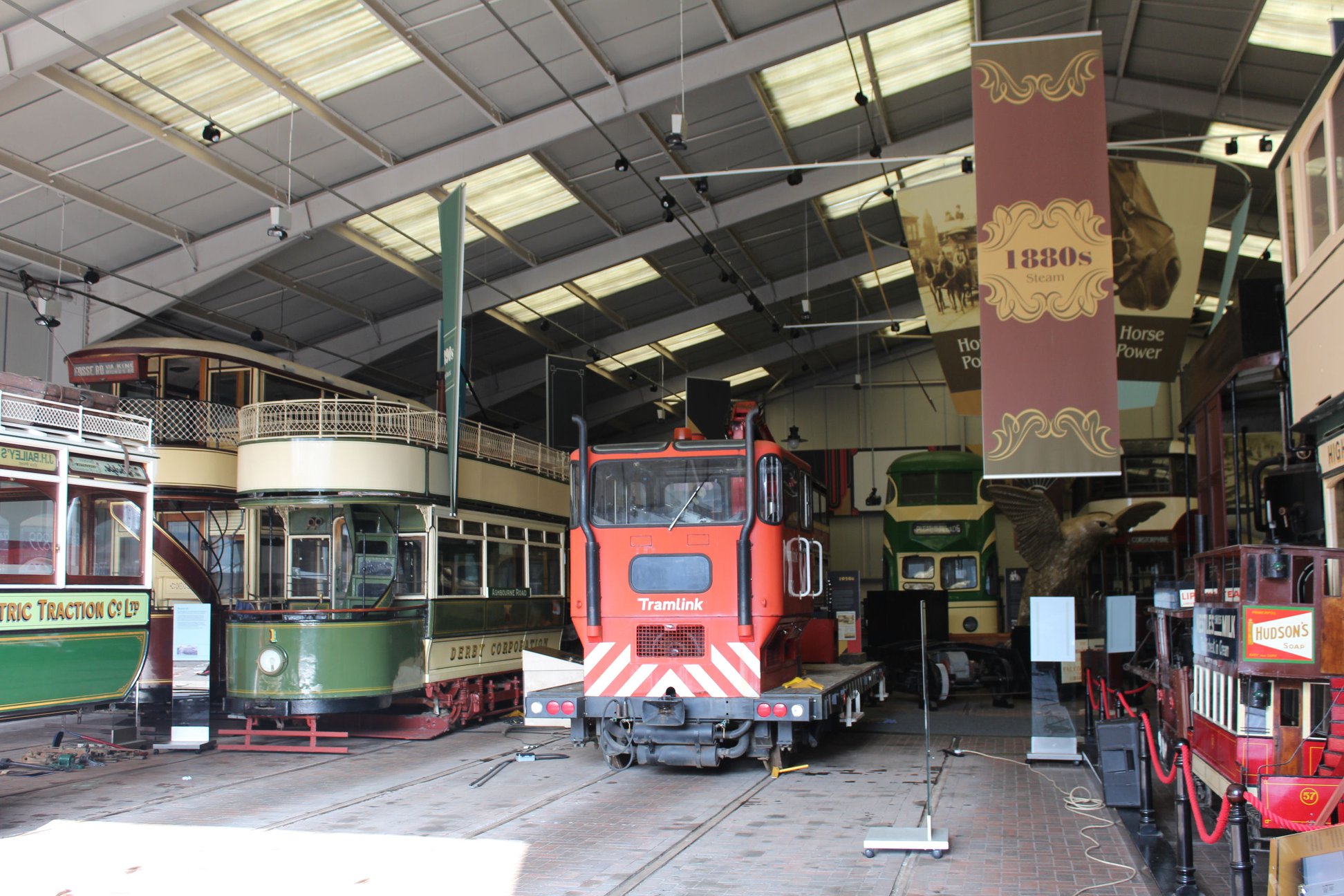 A very unusual scene with 058 seen inside the Exhibition Hall surrounded by more familiar residents including Derby 1 and Blackpool 249 (712).