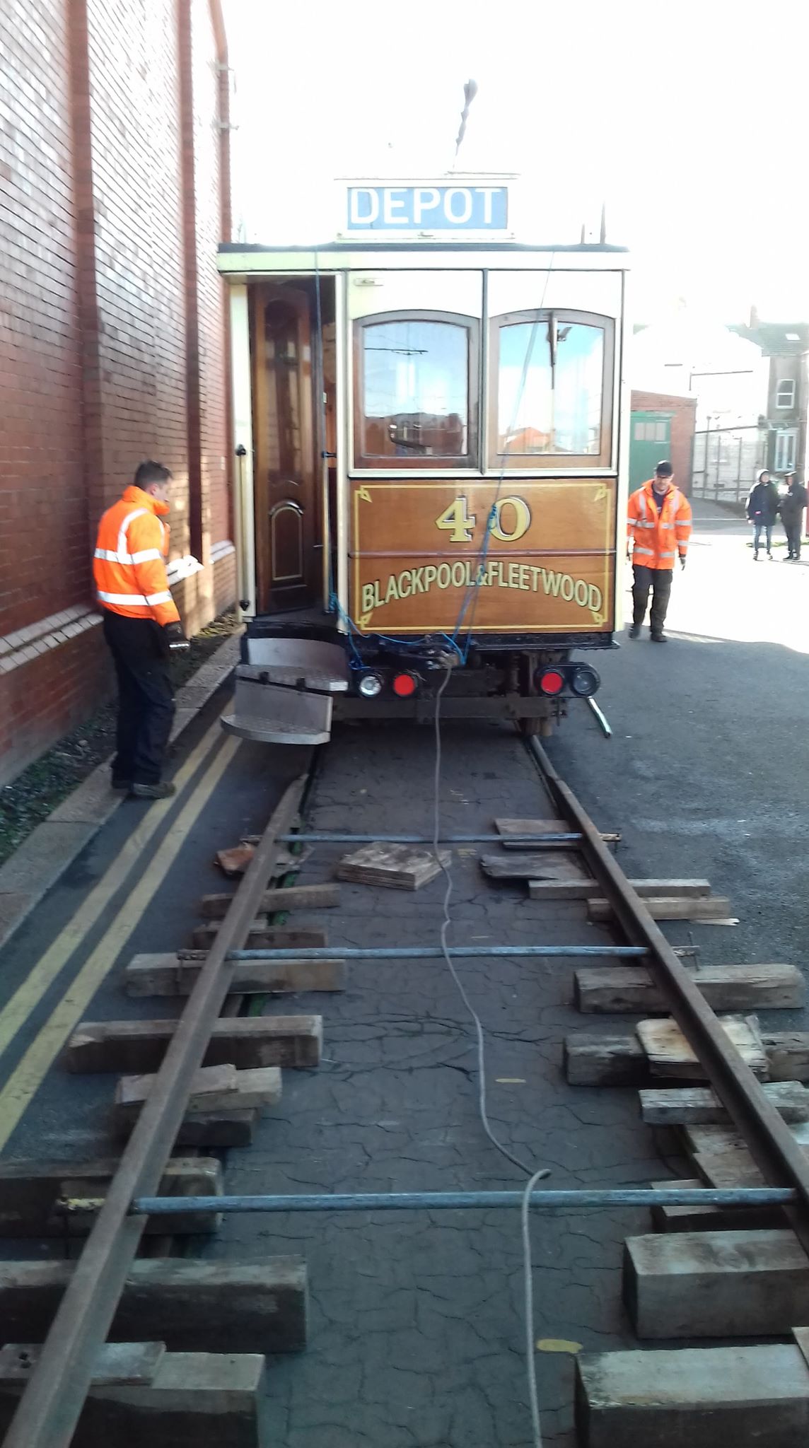 An historic scene with Box 40 being moved carefully up the loading ramp onto the Scott’s low loader on Blundell Street which would take it away from Blackpool for the fourth time in its long life. (Photo by Andrew Bailey)