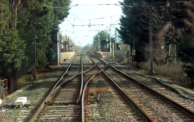 During the closure only platform 2 was in use at Wallsend with trains from the city using the crossover before the station and running wrong line into platform 2. This is view of the cross-over approaching Wallsend, with the points set for Platform 2.