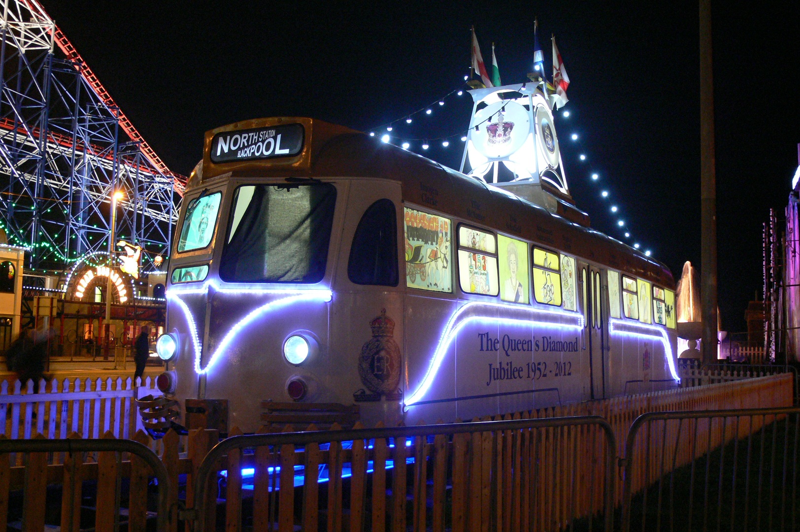 Pride of the FHLT fleet, Brush car 290 seen fully illuminated at Pleasure Beach in September 2012 carrying its stunning Diamond Jubilee livery. (Photo by Andrew Waddington)