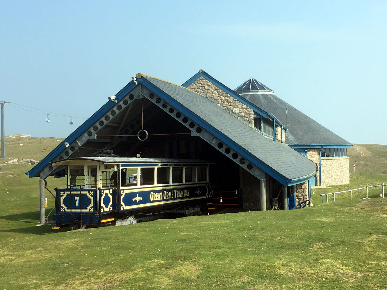 And the last of the quarter is no. 7 which is again seen at Halfway. The winding room at Visitor Centre is seen to good effect in this shot whilst on the left hand side the Great Orme Cable Car can be seen. (All Photographs by David Stringer, 8th April 2019)