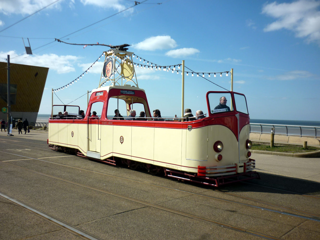 Boat 227 is seen here at North Pier/Tower with the destination blind already changed for a return trip to Pleasure Beach.