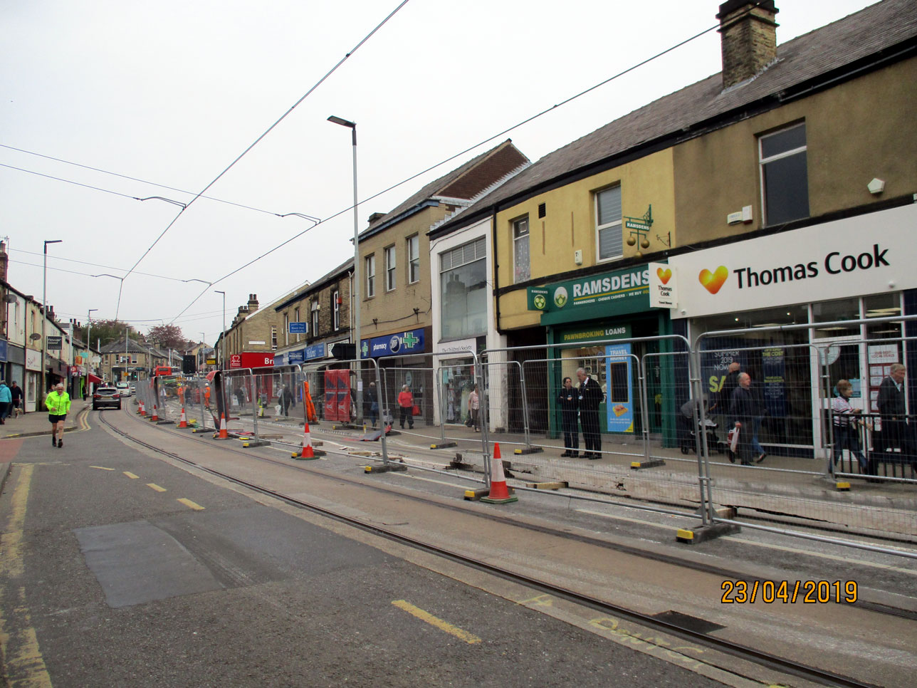 Along Middlewood Road and the inbound line is blocked off allowing work on the track relay to commence.