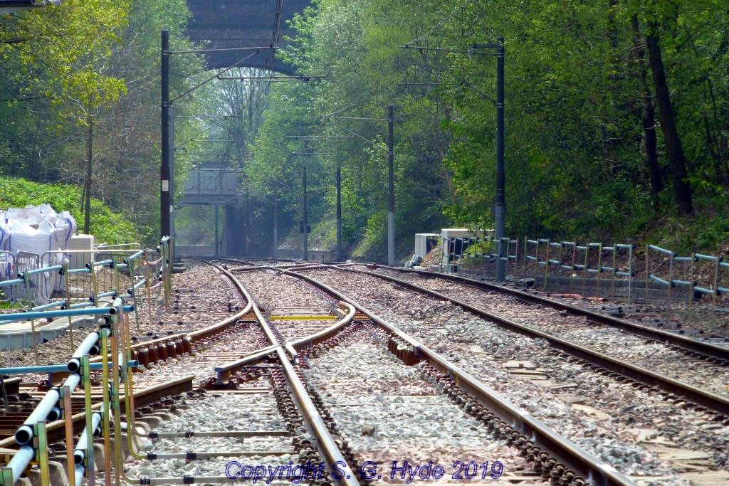 Taken from the actual stop at Crumpsall this low-level view shows the new pointwork in place. (Both Photographs by Steve Hyde, 24th April 2019)