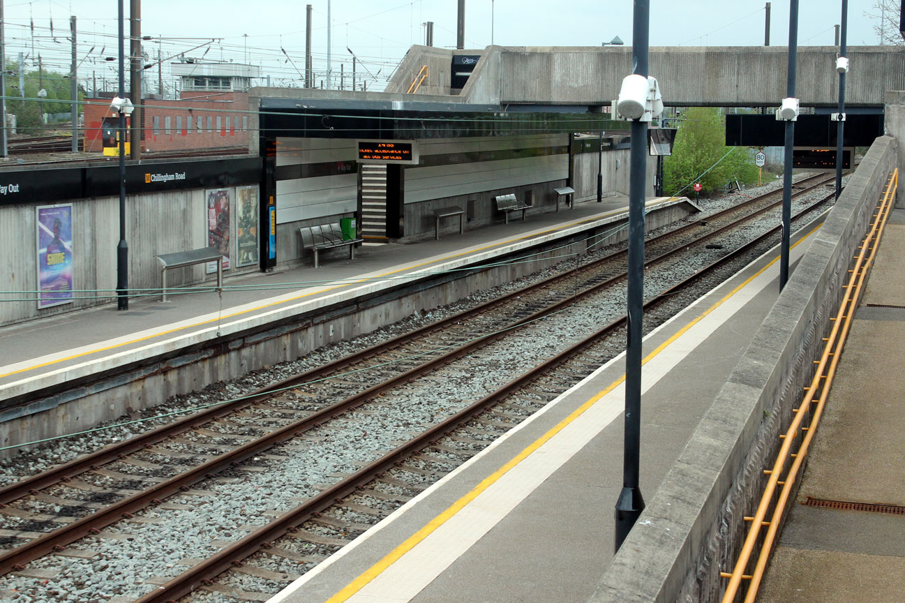 The scene at Chillingham Road on 1st May showing the sag in the overhead. The East Coast Mainline is the on the left hand side of the Metro lines here.