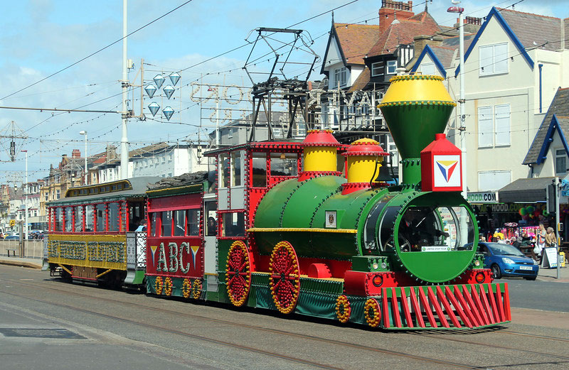 The tram heads towards the Pleasure Beach making for an unusual sight in the daylight.