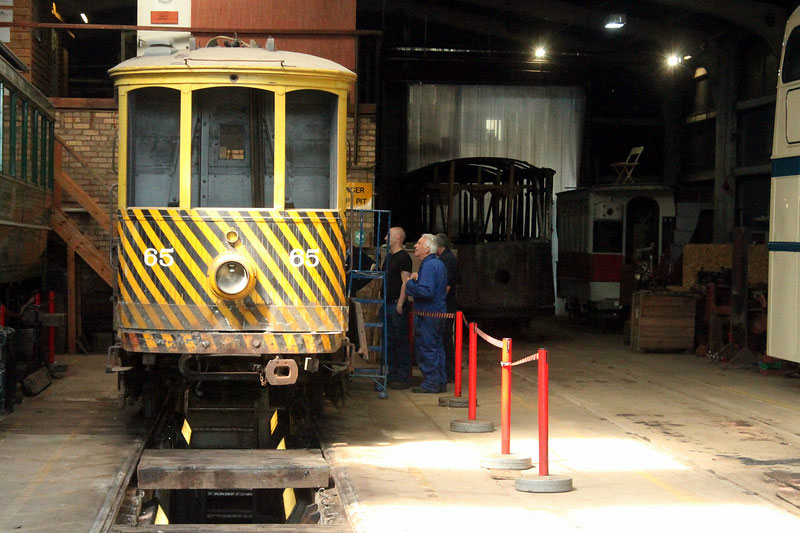 It’s difficult to know where to look in this photo as there is plenty of exciting trams visible. Oporto 65 is over the pit on road 3 with the tram attending to it discussing their next steps whilst in the background we see two more stored trams. The derelict tram in the centre is Gateshead 52 whilst on the far side we see horse car Newcastle and Gosforth 49. All three of these trams should see use at Beamish in the long-term but there are other more pressing projects to complete first.