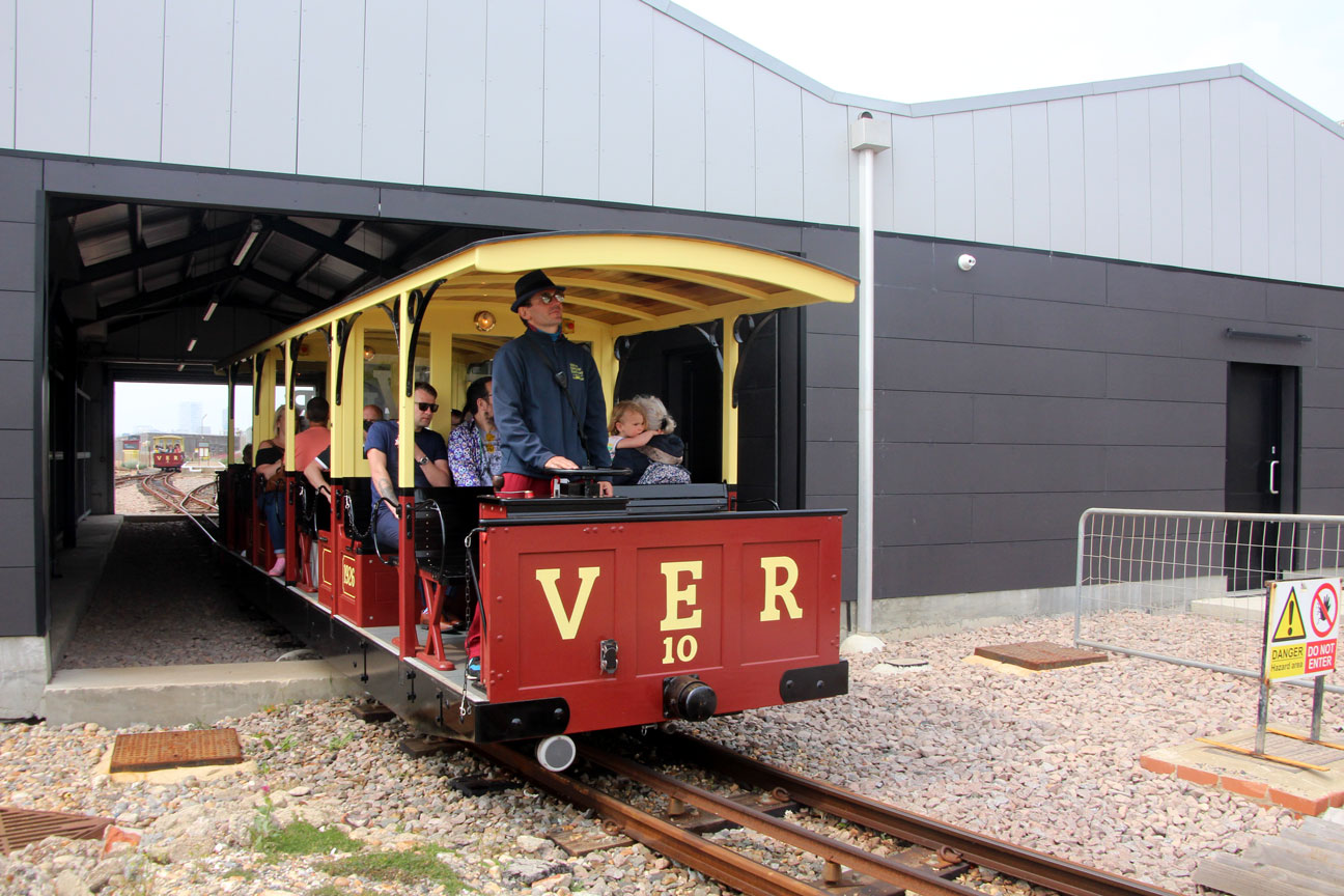 The station at Halfway can be seen through the car sheds here (and 9 stands at the platform) as 10 heads off to Black Rock.