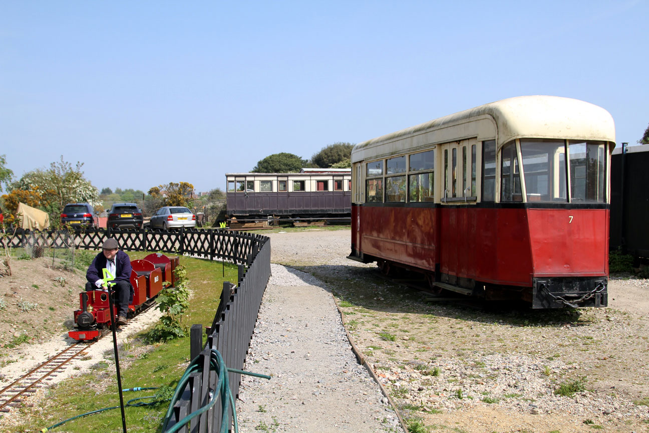 It may only be 3 foot gauge but the trailer dwarfs the miniature railway. In the background is a Manx Northern Railway carriage.
