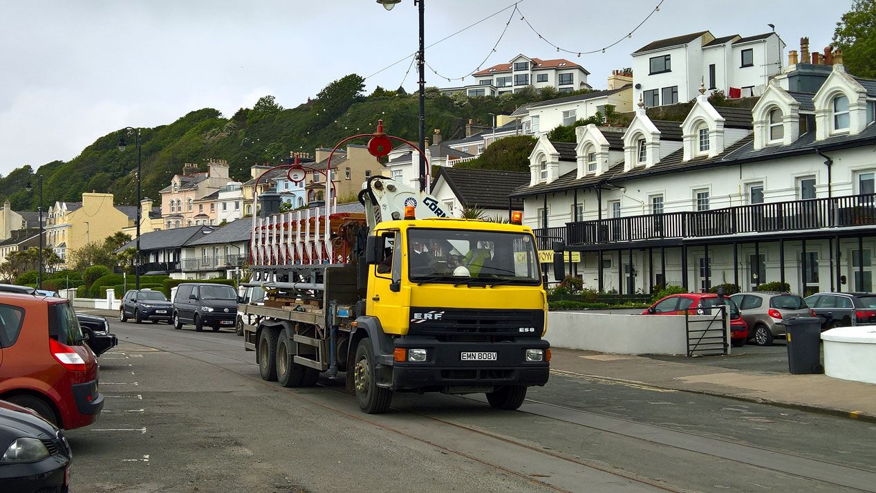 21 is driven along Strathallan Crescent as it returns to Douglas after rebuild.