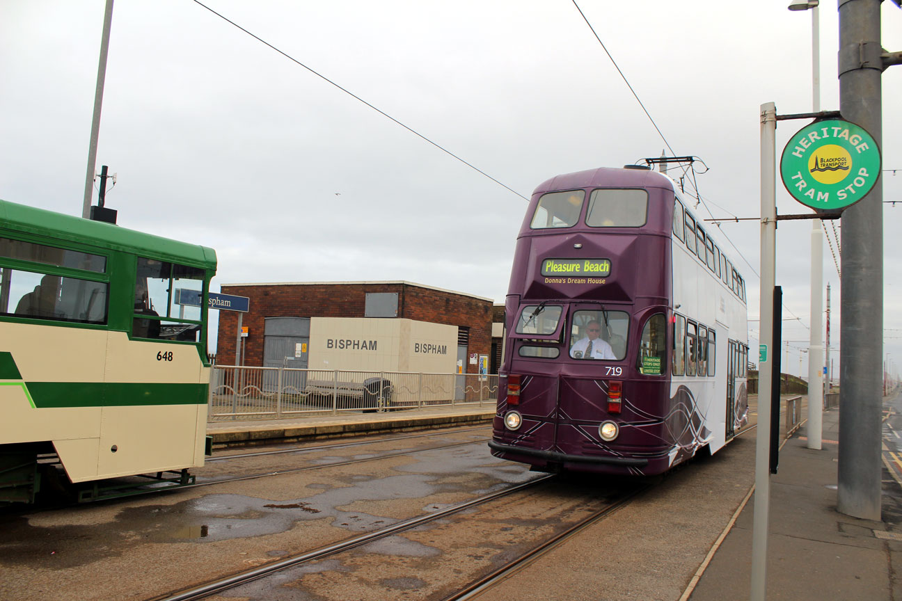 Before having to return to depot on 26th May Balloon 719 arrives at Bispham where Centenary 648 is waiting.