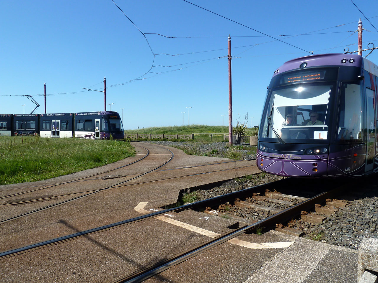 With 001 sitting on Little Bispham loop 002 passes southbound with a driver training run as denoted by both the destination display and the red L in the cab. (Photograph by Peter Dockerty, 27th June 2019)