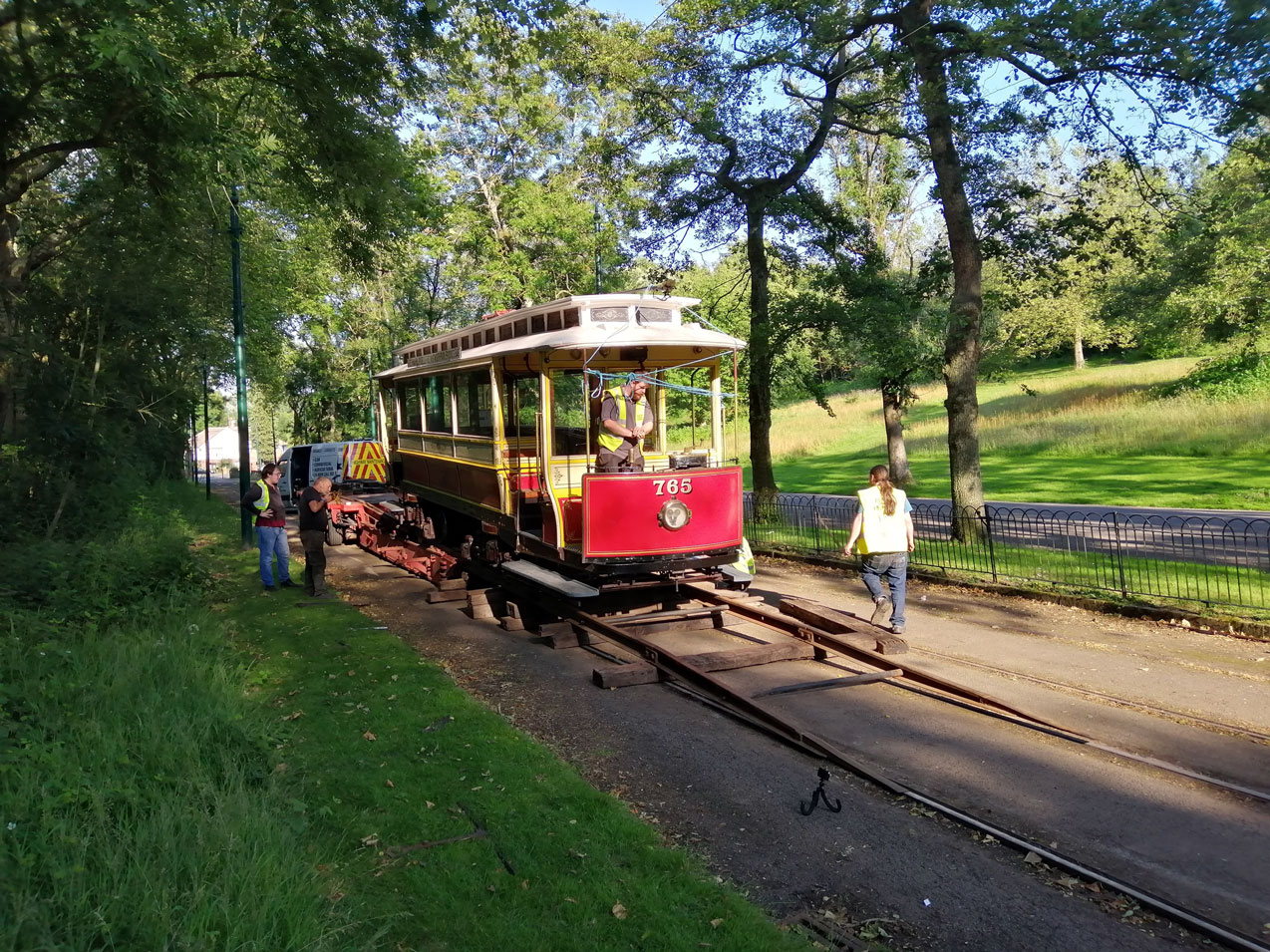 And down she comes back onto the rails of the Heaton Park Tramway.