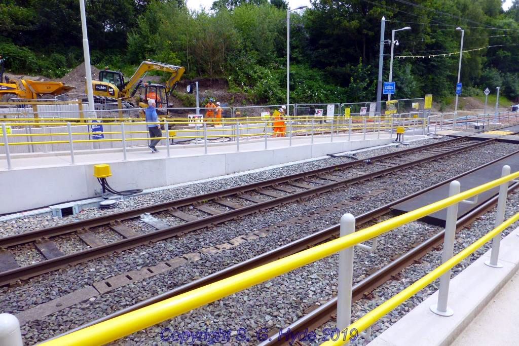 A view of the existing inbound platform at Crumpsall with the yellow axle counter electronics housings and rail mounted counter heads installed.