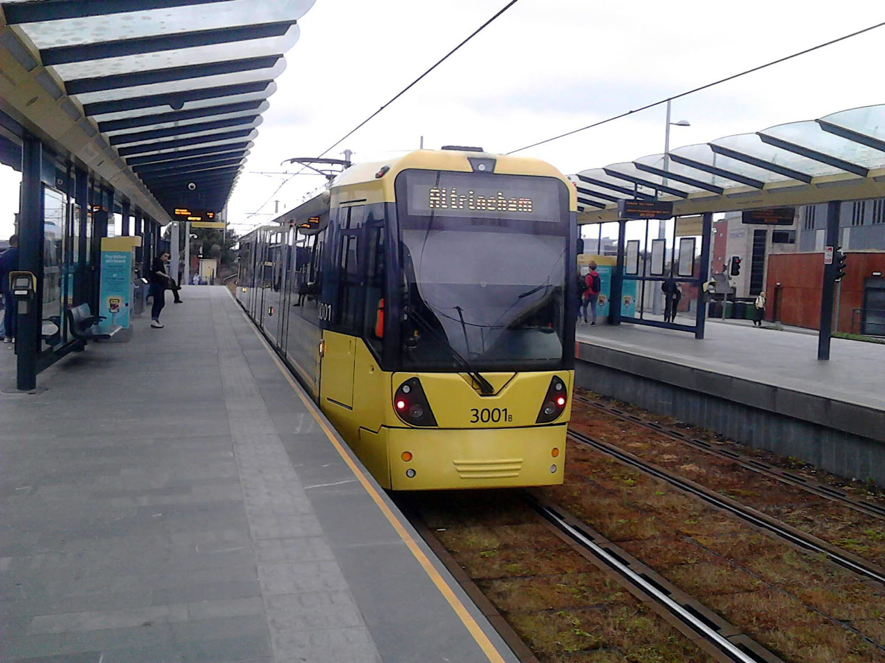 3001 at Deansgate-Castlefield on 13th July bound for Altrincham on the 10th anniversary of its delivery to Manchester. (Photograph by Reece Hughes)