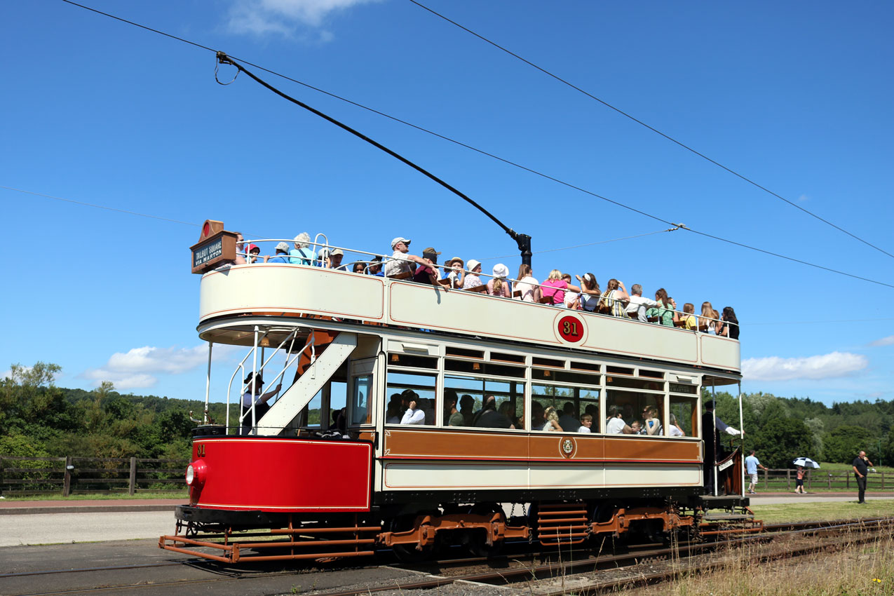 Meanwhile, Blackpool 31 was on the anti-clockwise ciruit. Once again we see the tram at Pockerley with more passengers soaking up the sun on the top deck. (All Photographs by Trevor Hall, 23rd July 2019)