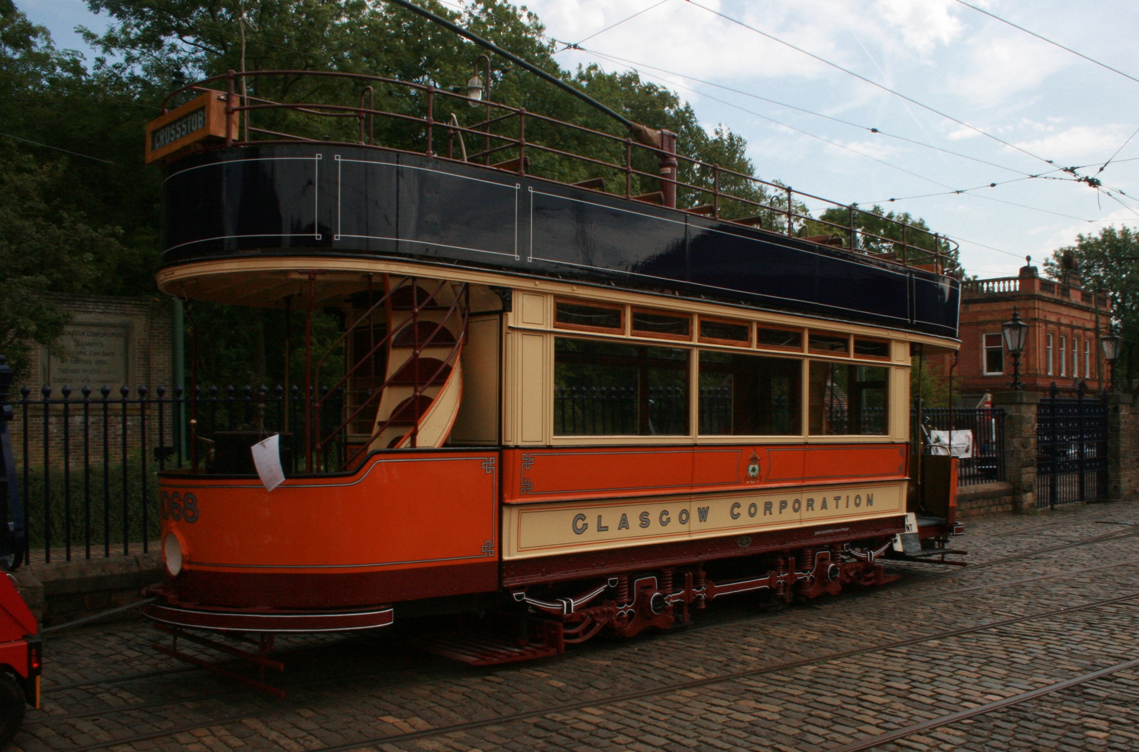 Shortly after completion of its repaint, Glasgow 1068 is seen being shunted in the depot yard at Crich last September. (Photo by Andy Bailey)