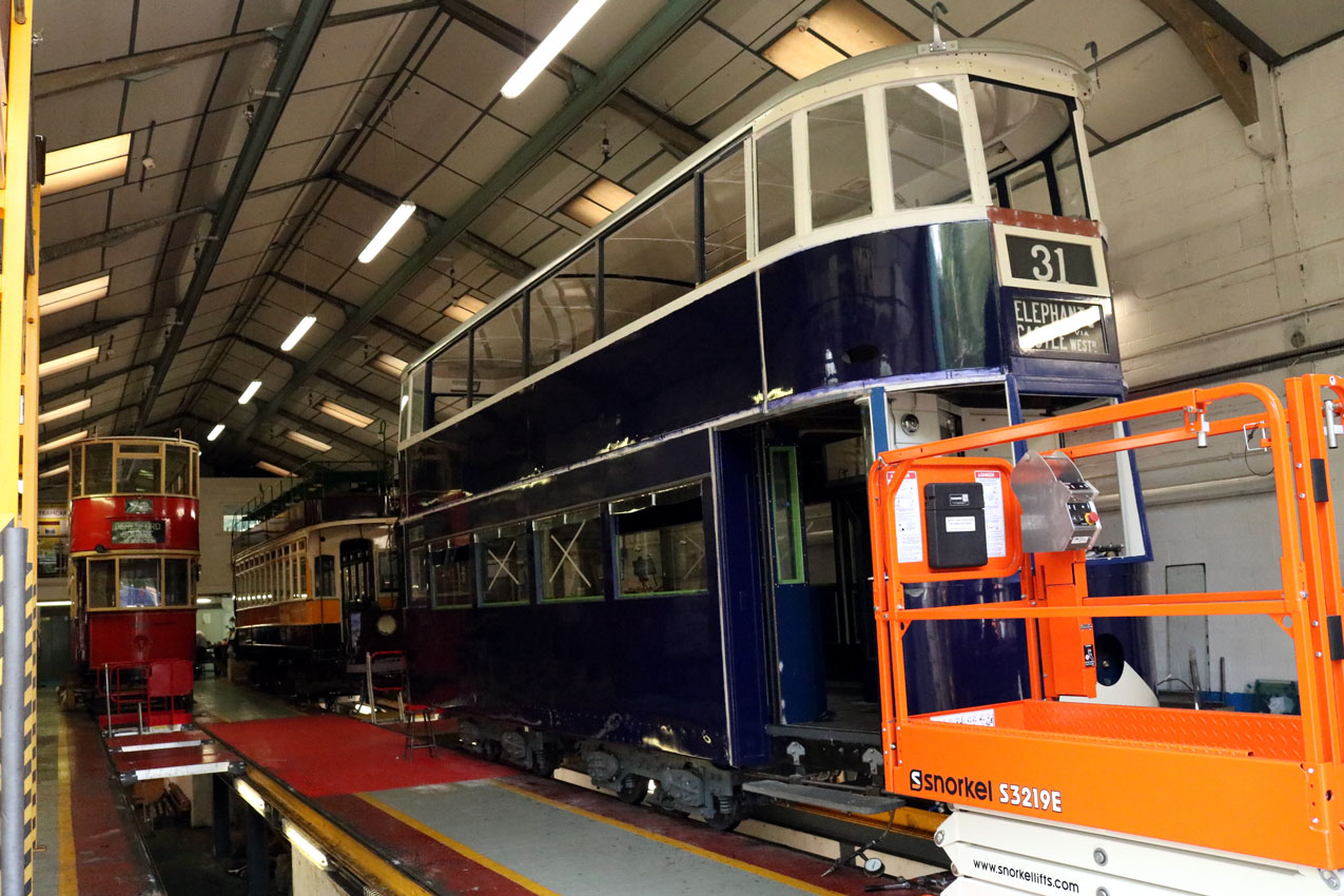 Before we start with the trams in service we take a look inside the Workshop where the usual three can be seen. London County Council 1 is now back on the road 3 following the completion of the work needed on its roof and further glazing now also appears to have been put into the windows. Newcastle 102 and London Transport 1622 are also present with the former’s trucks now having returned from shot blasting with a move for crack testing to follow soon.