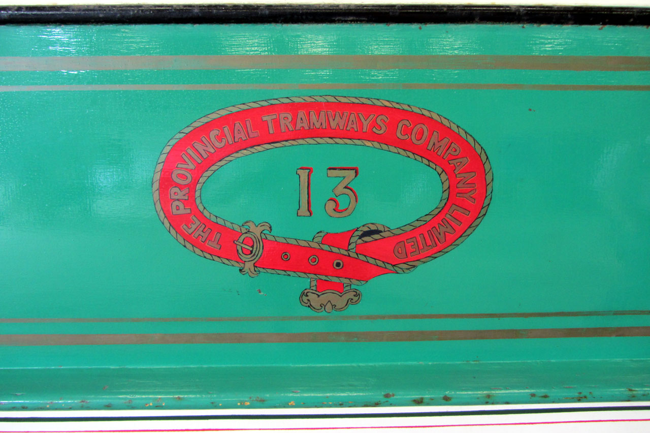 A close-up of the Provincial Tramways Limited logo and tram number on the exterior of the tram. (All Photographs by Bob Hodges, 11th August 2019)