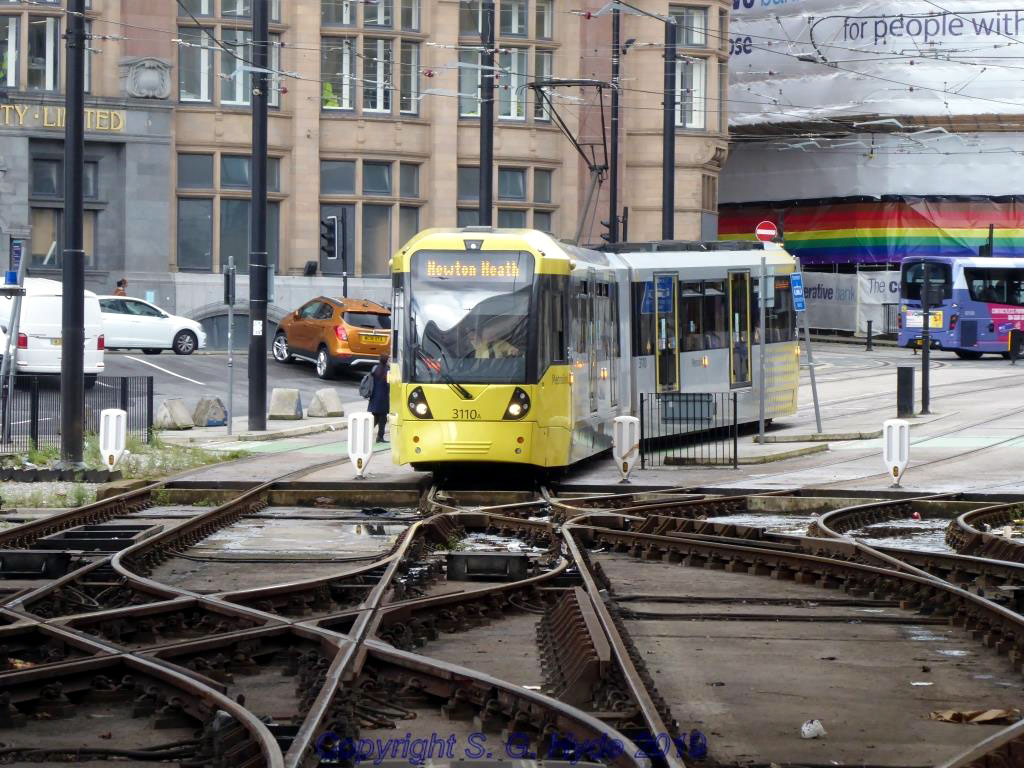 Having descended Balloon Street 3110 enters Victoria Station on a journey to Newton Heath having been diverted via Market Street.