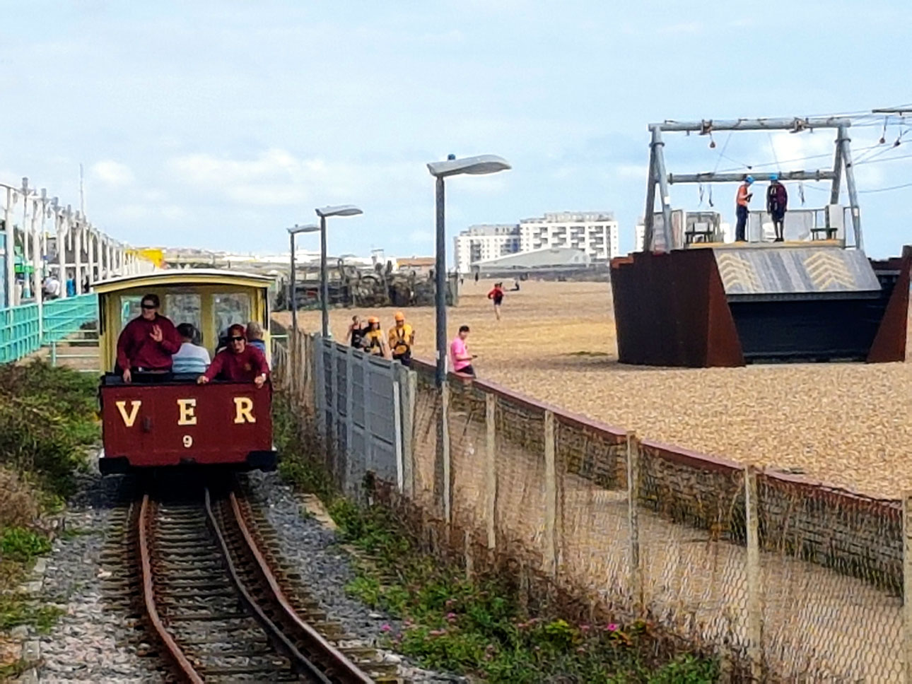 Brighton is for the thrill seekers as evidenced by the zip wire on the beach to the right here. For those who prefer a more sedate pace of life 9 and the Volks Electric Railway is the way to go!