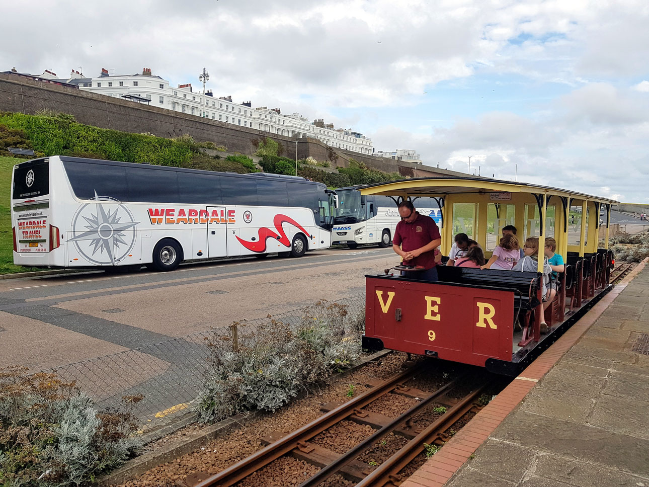 With a coach park located alongside the VER there are plenty of coach parties who enjoy a trip on the line. Here we see the driver of 9 waiting departure time from the Black Rock terminus.