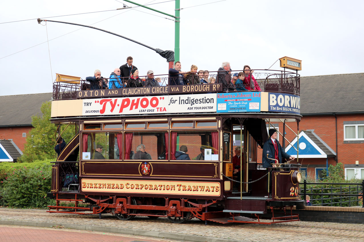 Birkenhead 20 on one of its special Pacific Road to Woodside Ferry trips with the tram approaching the latter location. (All Photographs by Trevor Hall, 6th October 2019)