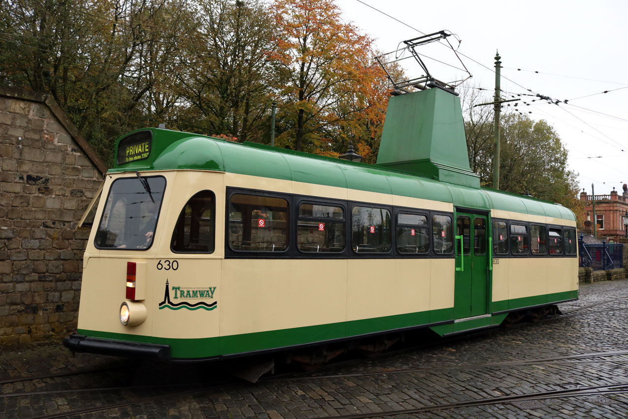Blackpool 630 was one of the service cars on this day – with saloon heaters on! – and is seen here just leaving the depot.