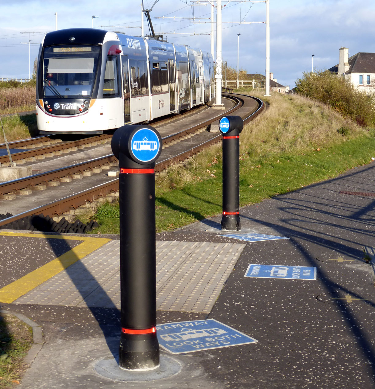 As most people nowadays have head down signs have also been placed on the ground warning that they are approaching the tramway. 253 heads to York Place in the background. (All Photographs by John Hampton)