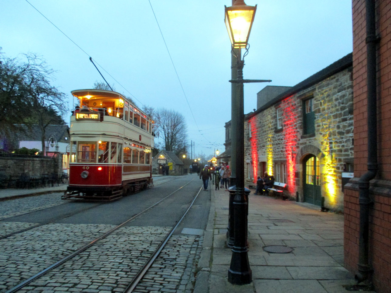 A third Blackpool tram in action as Standard 40 is seen at Stephenson Place with artificial light starting to take charge. Also note the coloured lighting on the right.