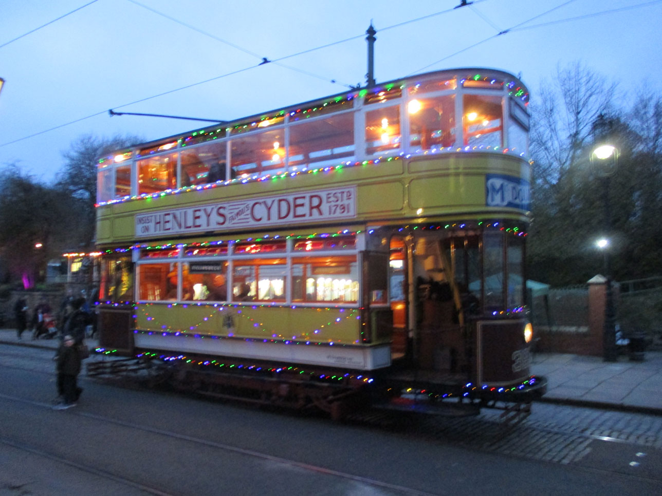 Leeds 399 with its added fairly lights at Stephenson Place.