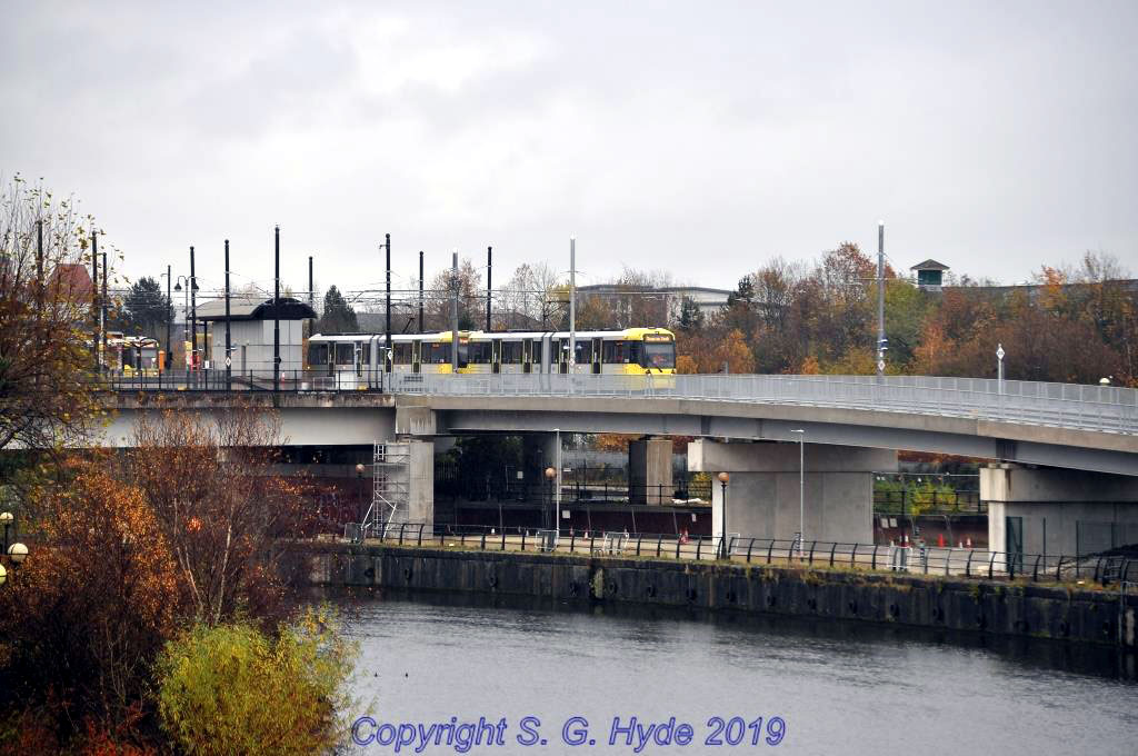 3082 and 3086 edge forward down the ramp towards Trafford Road on their way to Wharfside.