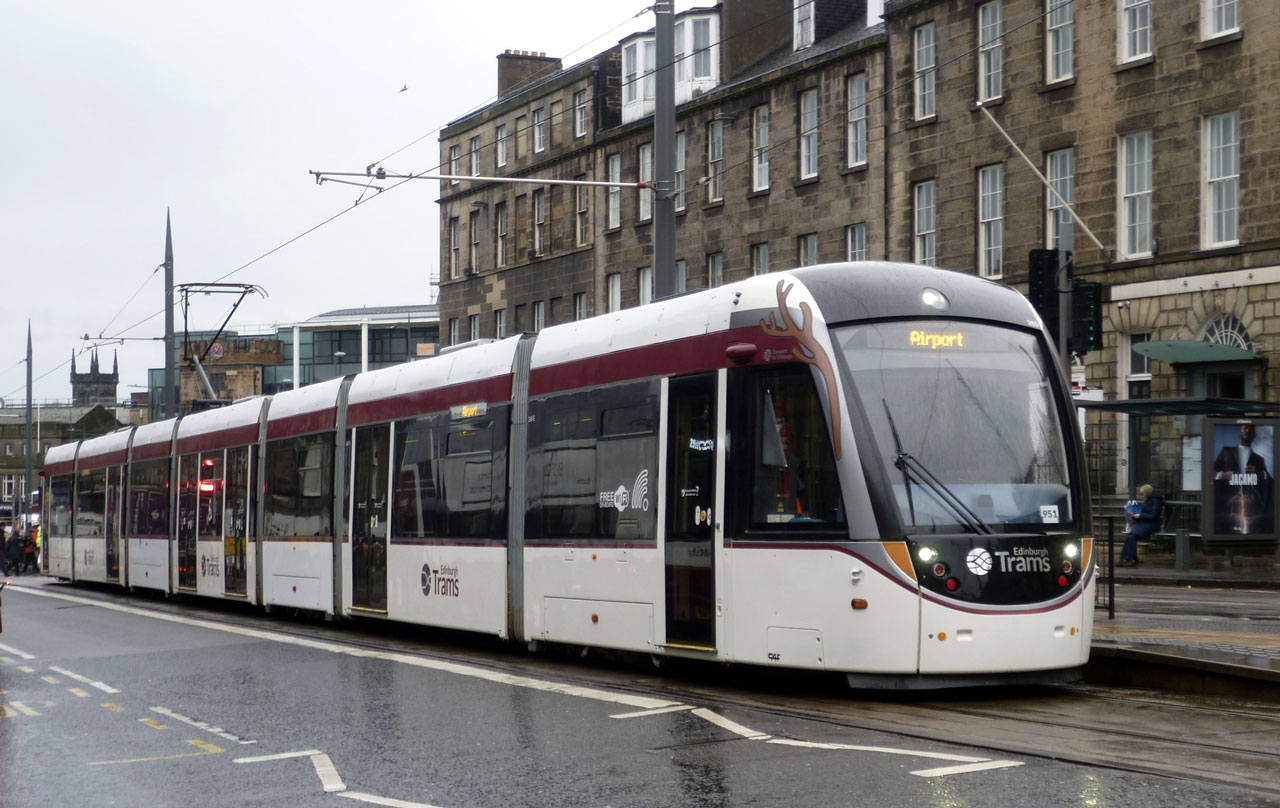 The first tram we featured to have received antlers and names was 269 which is named Dasher and Cupid. With the names only held on one end per side this view shows the tram without name at York Place. (Photograph by Roy Calderwood, 10th December 2019)