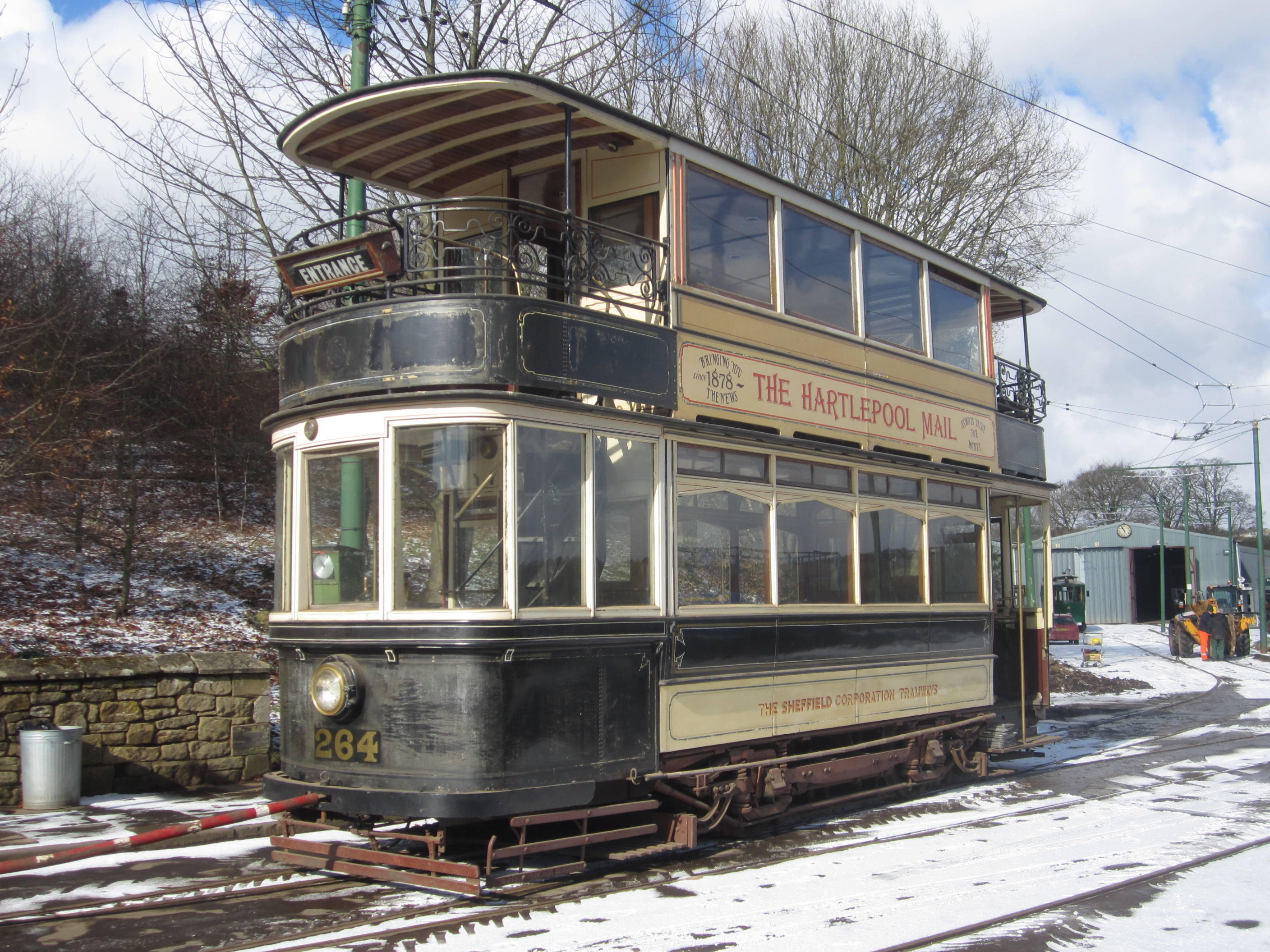 A very shabby but still attractive Sheffield 264 seen out in the snow at Beamish whilst wiring work was ongoing inside the depot complex. (Photo courtesy of the Beamish Transport & Industry Blog)