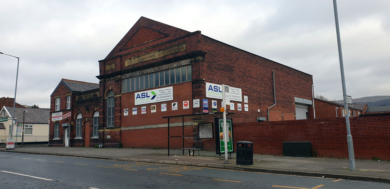 Now in use as industrial premises the “Bolton Corporation Car Shed” legend is still in clear evidence of the structure.