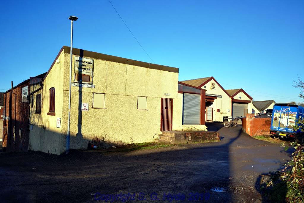 This photograph shows the rear of the two level depot where works hops and stables were located above the tramcar accommodation. Also visible is the street plate displaying the name Tramway Road no doubt recalling the former use of the buildings.