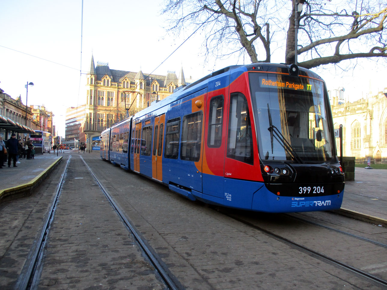 Two views of 399 204 at Cathedral as it operates the 1039 service to Rotherham Parkgate on its first full day in service. (Both Photographs by Stuart Cooke, 20th January 2020)