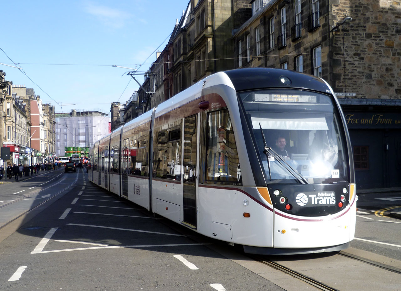 Another tram for the advert is seen here as 257 approaches the stop at West End.