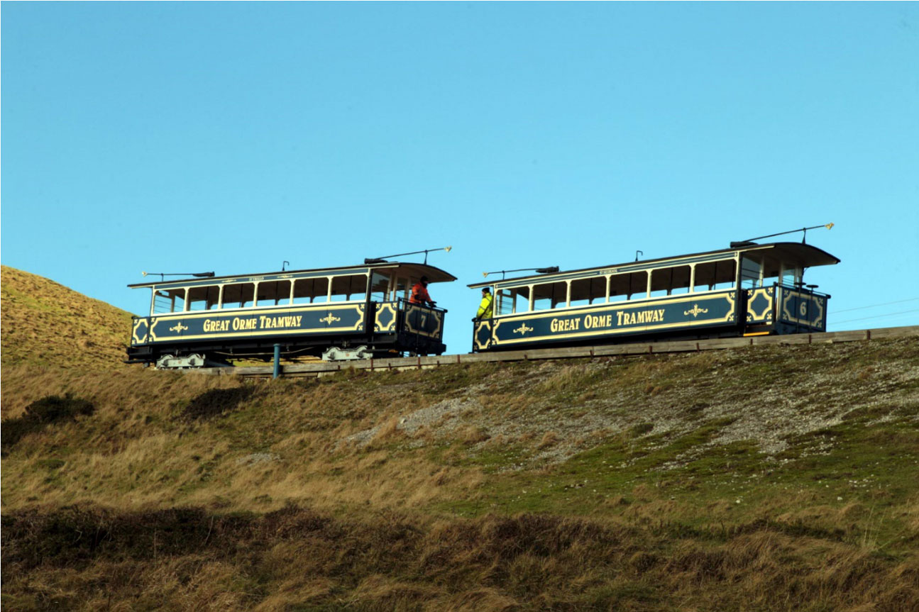One wonders how many times over the lifetime of the Great Orme Tramway photos have been taken of two of the vehicles passing at the loop halfway between the Summit and Halfway? Well, here’s another as we see 7 heading down, 6 on the way up.