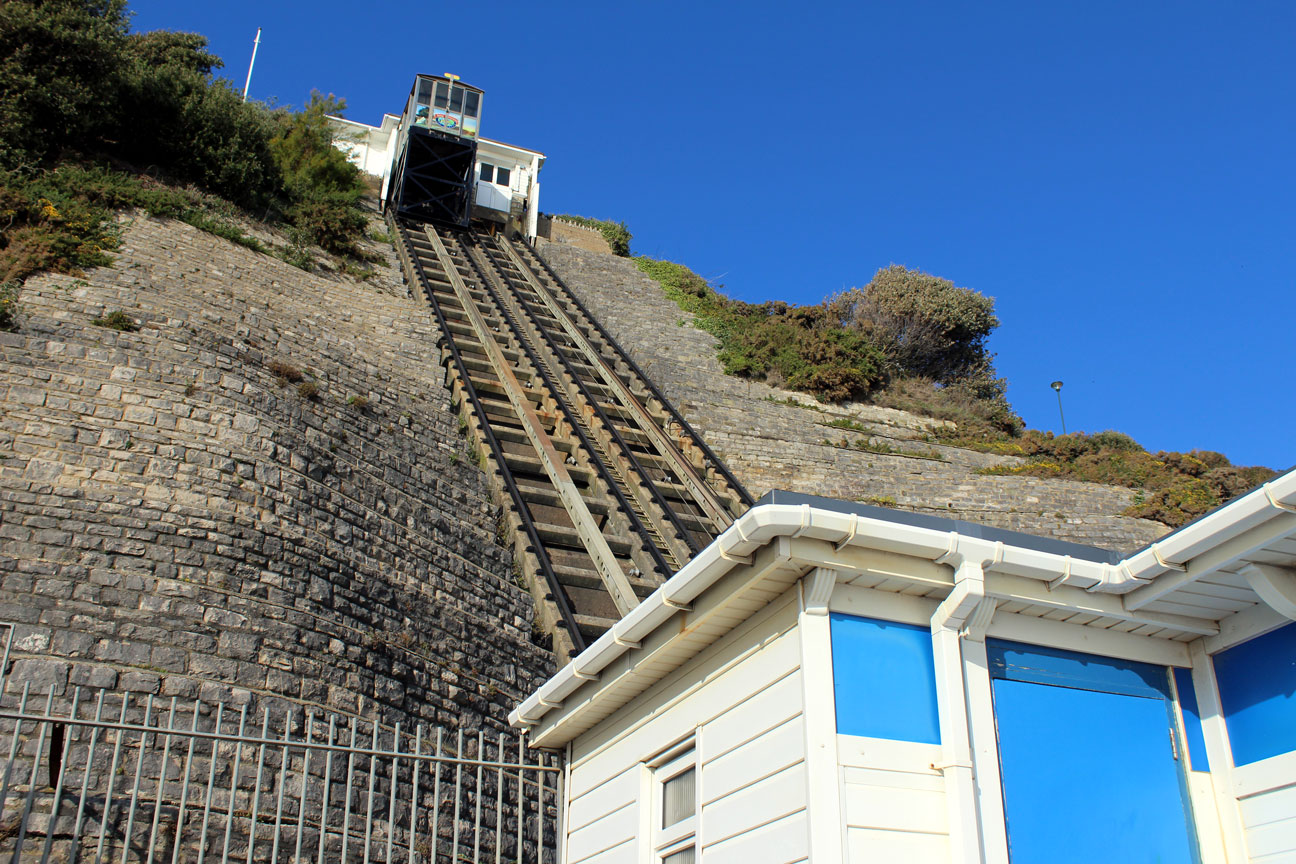 The relatively short-length of the route can be seen in this view from the seafront with the same car still at the top. (Both Photographs by Gareth Prior, 22nd October 2019)