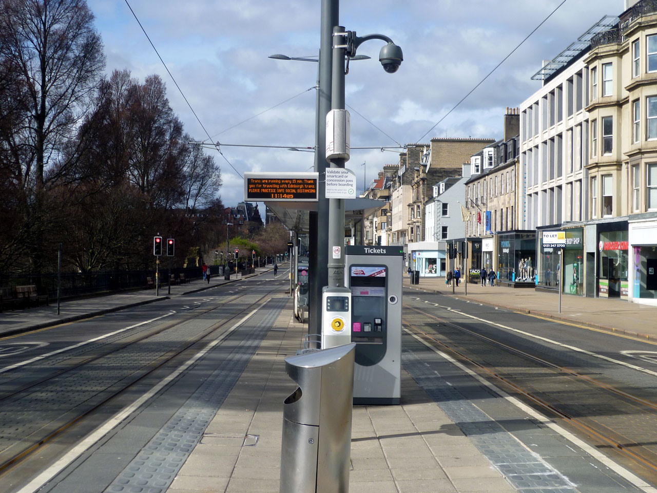 This second image shows the Princes Street stop on a very empty road. Mid-morning on a weekday before the pandemic this sort of view would have been un-heard of. (Both Photographs by Roy Calderwood, 30th March 2020)