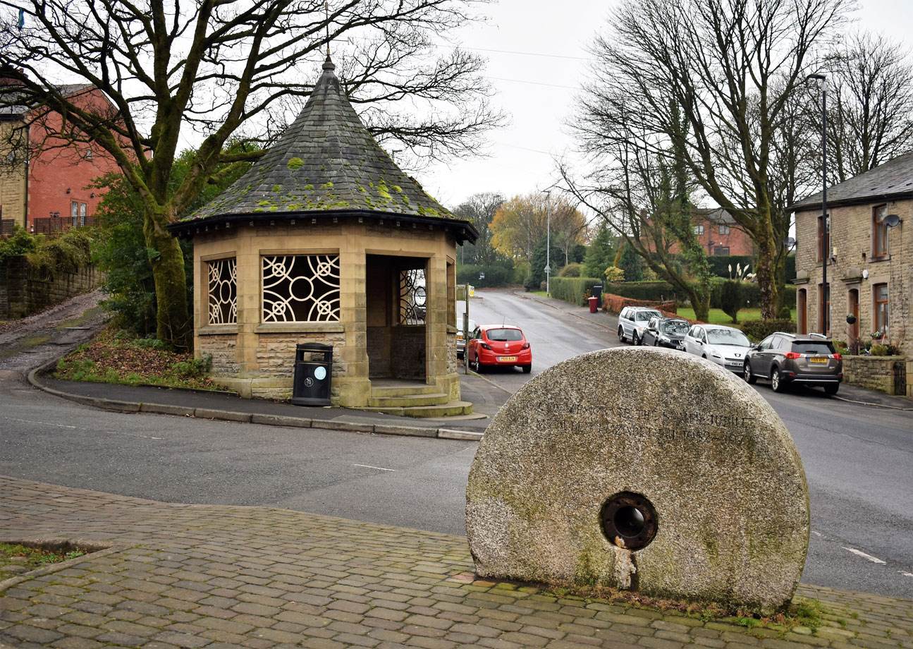 The tram waiting shelter in Hoddlesden village, where the trams arrived from Darwen down the road on which the cars are parked. The millstone in the foreground acts as a reminder of the village’s industrial heritage. From 1876 a 3km freight-only standard gauge branch railway also served Hoddlesden, closing between 1950 and 1962. (All Photographs by Donald Brooks, 22nd November 2018)