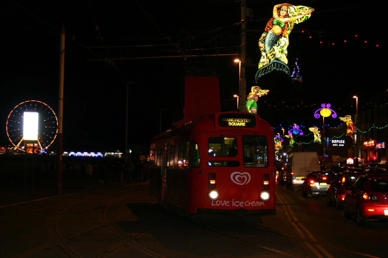 631 is about to head across the Prom road one last time (well, on the pre-upgraded tramway anyway!) on 6th November 2011. The tram is in an advert for Walls Ice Cream.